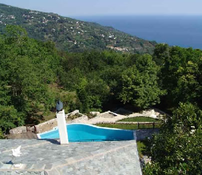 Χτισμένο σε σημείο τέτοιο, ο ξενώνας Άρωμα Πηλίου έχει μοναδική θέα το Αιγαίο και τις πλαγιές του βουνού των “Κενταύρων” σε κάθε του σημείο.